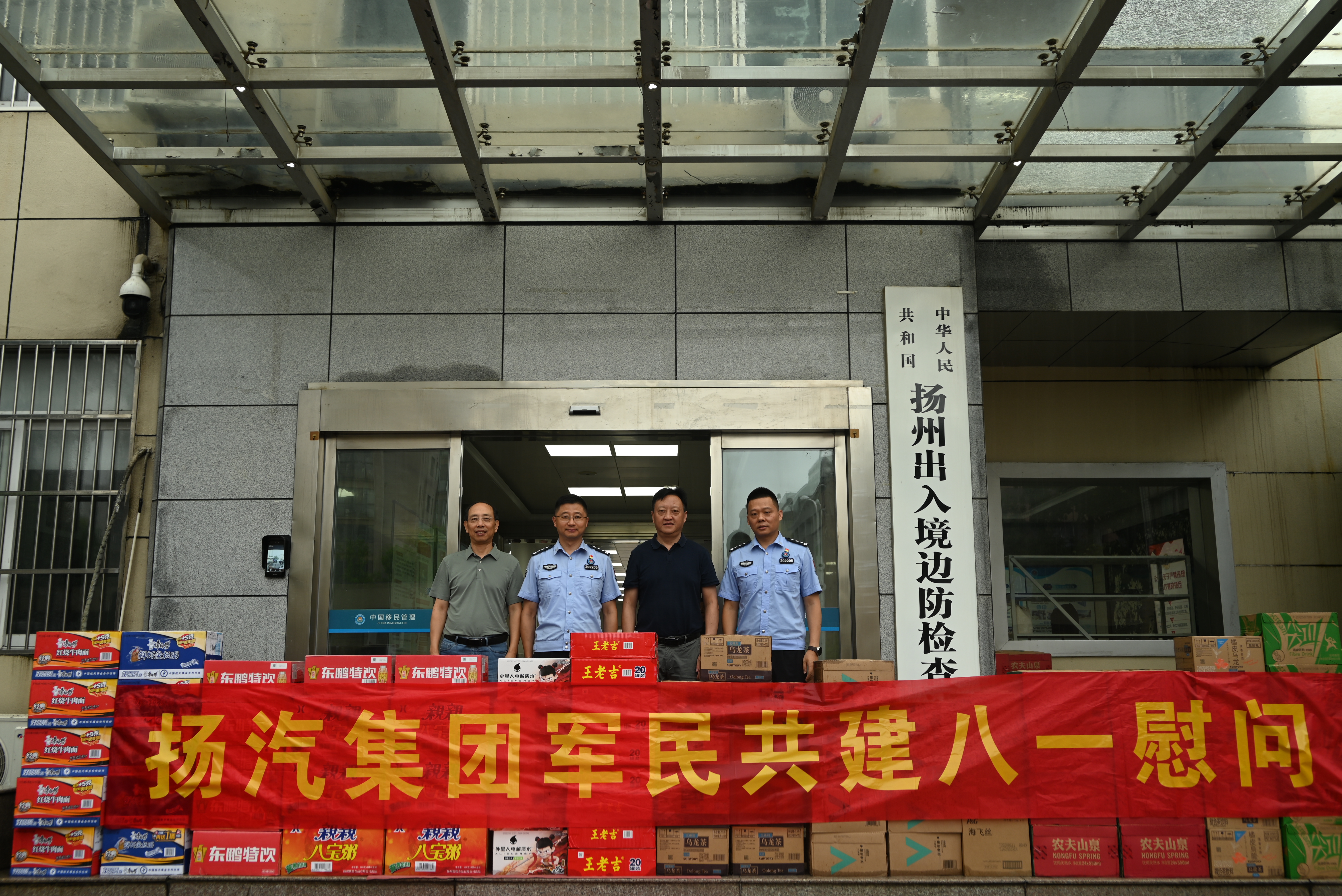 在“八一”建軍節(jié)即將來臨之際,7月31日,揚汽集團(tuán)黨委副書記、副董事長、總經(jīng)理劉俊一行,前往黨建共建單位揚州出入境邊防檢查站進(jìn)行走訪慰問,向官兵們送上節(jié)日的祝福和誠摯的問候。揚州出入境邊防檢查站副站長李崗,揚汽集團(tuán)黨委副書記、紀(jì)委書記、工會主席陳家宏參加活動。