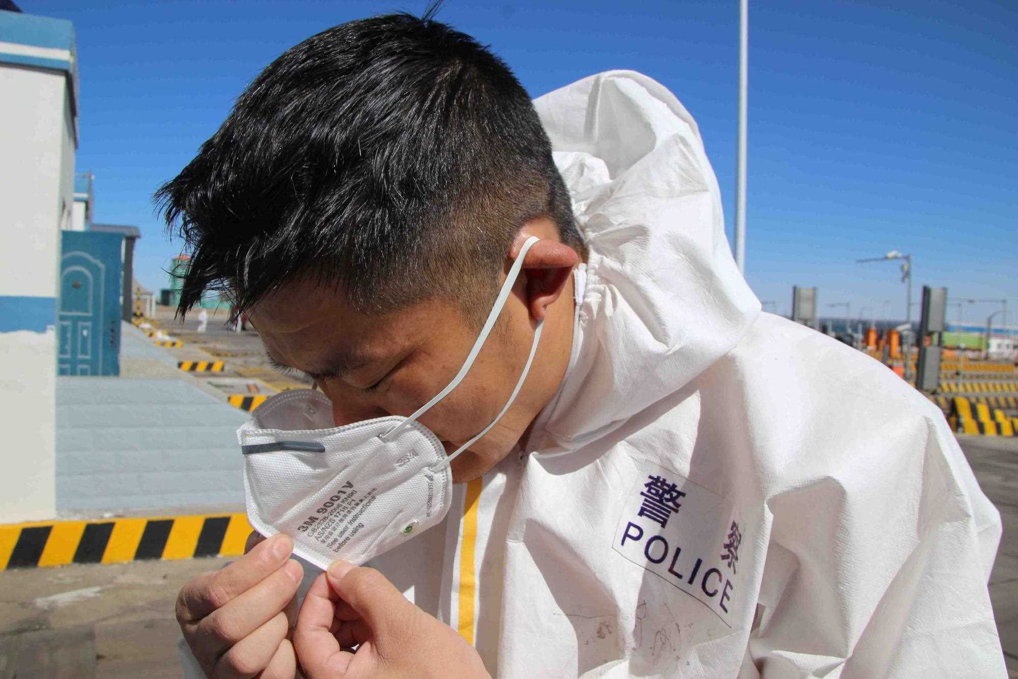 近期策克口岸的溫度持續(xù)增加至30攝氏度以上,而在通行的重型卡車,溫度還要更高,下午15點溫度計地表溫度測量最高可達40攝氏度。這無疑讓的查驗工作更為繁重。更重要的是,由于疫情影響每名民警在查驗期間都要穿上防護服,在高溫下,由于防護服是密閉的,防護服里仿佛成了蒸箱,用不了十分鐘,民警就會汗流浹背,防護服黏在身上又粘又癢,一班勤務(wù)近2個小時,必須要等過了勤務(wù)才能休息,而民警還要完成車體的查驗工作,包括工具箱、馬槽等處,絲毫不敢馬虎。