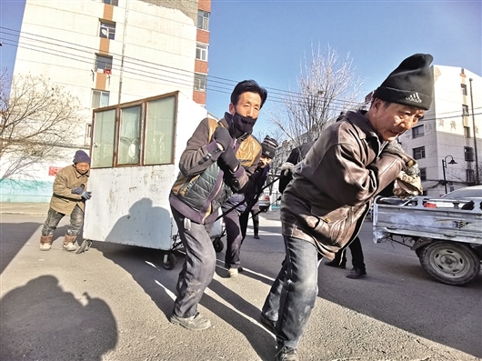 “由于您的車長(zhǎng)期占用小區(qū)公共資源,給小區(qū)居民出行帶來(lái)不便。請(qǐng)您看到通知后,在3日內(nèi)自行將您的車挪出小區(qū),如逾期未挪走,我們將您的車做無(wú)主僵尸車報(bào)相關(guān)單位統(tǒng)一處理”。1月15日,黃河西路街道友誼19#四社區(qū)將通知貼在一輛鐵皮車輛醒目的位置,一直無(wú)人將車輛挪走。圖為1月18日,友誼19#四社區(qū)的工作人員將該“僵尸車”清走時(shí),車主突然現(xiàn)身。社區(qū)工作人員耐心細(xì)致地與該車主交流后,車主表示配合。文/圖 李強(qiáng)