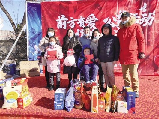 志愿者代表為兩名孩子送來(lái)愛(ài)心壓歲錢(qián)和年貨