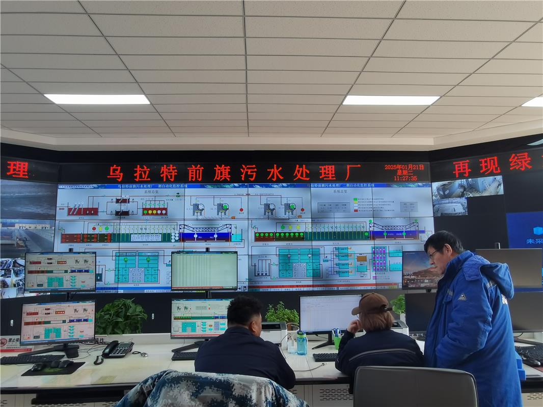 2月18日,記者走進(jìn)巴彥淖爾市烏拉特前旗鴻德污水處理廠總控室,大屏幕上清晰展示著從預(yù)處理到深度處理再到消毒等污水處理全過(guò)程。廠區(qū)內(nèi)相關(guān)設(shè)備的運(yùn)行狀態(tài),都經(jīng)過(guò)嚴(yán)格的智能化在線監(jiān)測(cè)。