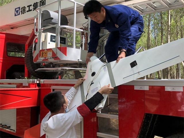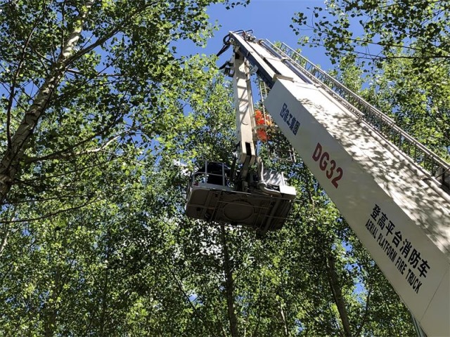 原來,6月4日11時30分許,曹先生來到赤峰市寧城縣汐子鎮(zhèn)北山咀村準備進行水域測繪,航拍的過程中,價值30多萬元的無人機突然消失了,曹先生四處尋找,才發(fā)現(xiàn)無人機被掛到了一棵很高的樹枝上,反復操作多次,無人機始終沒有動靜,疑似被卡住了,一籌莫展的他撥打了報警電話。赤峰市消防救援支隊寧城縣哈河大街消防救援站接到報警后,立即出動1輛32米登高平臺消防車及4名消防員趕赴現(xiàn)場進行救助。