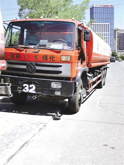 8月10日上午,北方新報正北方網(wǎng)記者在鄂爾多斯市國賓館前的道路上看到,一輛寫有“東勝園林19”字樣的藍白相間的水罐車沒有懸掛機動車號牌上路行駛。隨后,記者在東勝區(qū)吉勞慶南路,也看到了一輛寫有“東勝園林”字樣紅白相間的水罐車,在這輛車的尾部本該懸掛機動車號牌的地方被一塊寫有“臨時停車”字樣的牌子代替。采訪中,記者又先后在東勝區(qū)玫瑰家園北門前的道路和東勝區(qū)三角州公園前的道路上發(fā)現(xiàn)多輛寫有“東勝園林”字樣的車輛,均沒有懸掛機動車號牌。