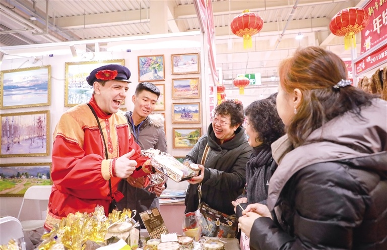 1月16日,來(lái)自俄羅斯的客商正在向首府市民介紹特色食品。當(dāng)日,第五屆呼和浩特市年貨博覽會(huì)在內(nèi)蒙古國(guó)際會(huì)展中心開(kāi)幕,來(lái)自國(guó)內(nèi)外的近千家企業(yè)帶來(lái)了琳瑯滿目各具特色的年貨,其中不少?lài)?guó)外產(chǎn)品受到青睞,眾多市民根據(jù)自己的喜好淘到了心儀的精品年貨。本屆年貨博覽會(huì)將持續(xù)到1月31日。