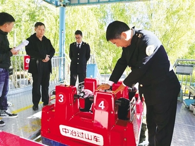 執(zhí)法人員對(duì)過山車進(jìn)行檢查