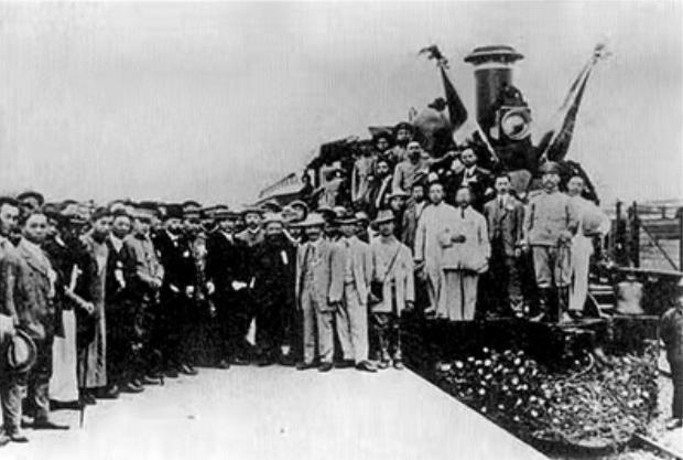 1912年9月6日,孫中山視察詹天佑修建京張鐵路時(shí),在張家口車(chē)站月臺(tái)上合影。(資料圖)1907年鋪設(shè)的老鐵軌。