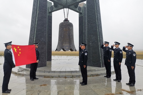 上午8時整,在塔日根諾爾邊境派出所,伴隨著雄壯的國歌聲,五星紅旗冉冉升起,全體民警肅然挺立,向在抗日戰(zhàn)爭中死難的同胞默哀。在諾門罕戰(zhàn)役紀(jì)念廣場的和平大鐘前,諾門罕布日德邊境派出所民警面向國旗,舉起右手,重溫人民警察誓詞,錚錚誓言響徹天際,感染并激勵著民警扎根北疆、建功北疆。巡邊途中,額布德格邊境派出所民警為界碑拭去灰塵,以獨(dú)有的方式向無數(shù)為國捐軀的革命烈士致以崇高敬意。罕達(dá)蓋邊境派出所組織觀看了《九一八事變》,通過觀影,警醒民警時刻銘記使命職責(zé),勿忘國恥,發(fā)奮圖強(qiáng)。