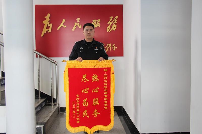 8月31日,三河邊境派出所值班室收到一個來自2000公里之外的包裹,打開包裹一看,里面裝著一面繡著“熱心服務(wù),盡心為民”的錦旗。錦旗的背后,是一個暖心的故事。7月31日,包頭市游客黃先生到派出所報警稱在白樺林景區(qū)游玩時將手提包丟失,包內(nèi)裝有現(xiàn)金和一行三人的身份證件,情緒非常激動,民警一邊安撫游客情緒,一邊組織警力進行尋找,不到20分鐘就將游客手提包找到并歸還,游客緊緊握著民警的手,轉(zhuǎn)悲為喜。