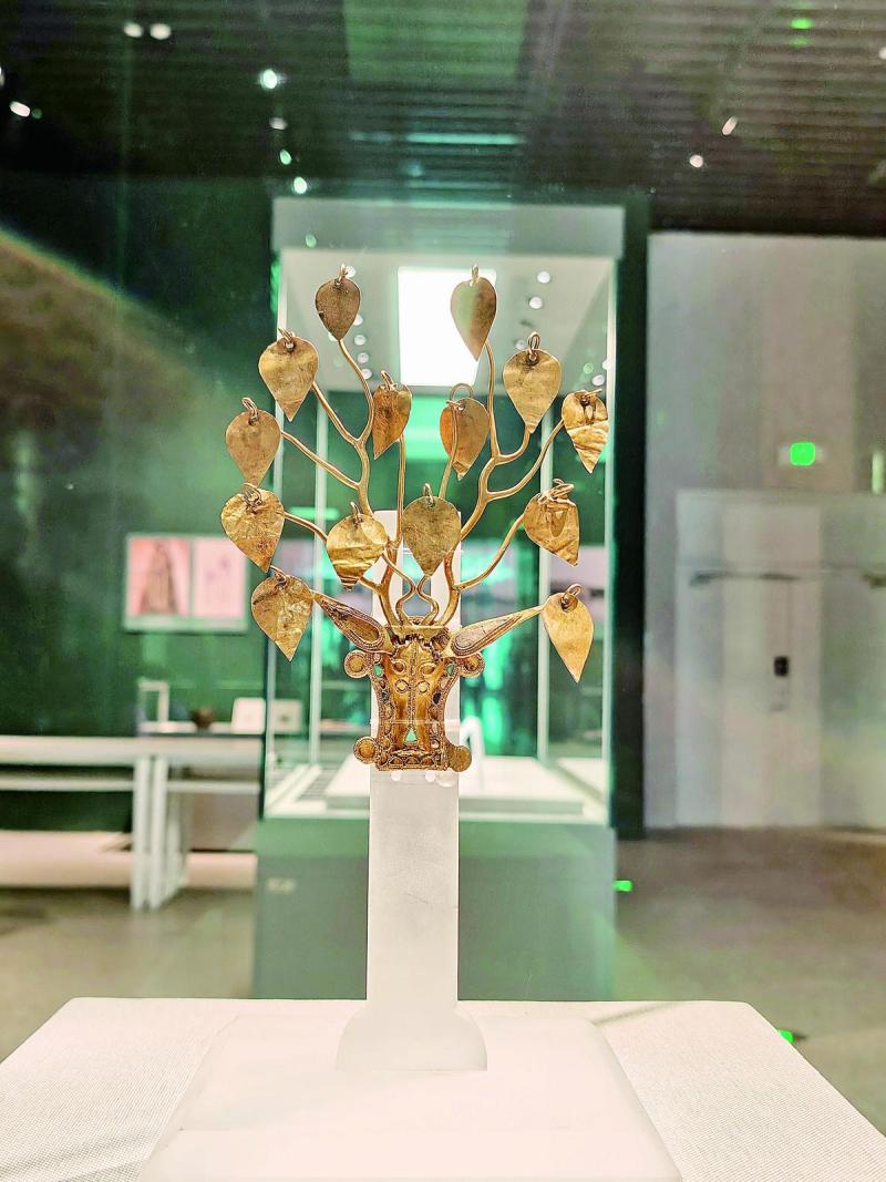 展覽中,呼倫貝爾的嘎仙洞遺址出土的石鏃、骨錐等,見證了拓跋鮮卑早期的生活遺跡;內(nèi)蒙古博物院藏的鹿角金步搖冠精美華麗,鹿頭面部鑲嵌有珠飾,鹿角支叉上所掛的桃形金葉均可搖動,象征著草原民族對于鹿的崇拜;釉陶馬、青釉武士俑,展示了拓跋鮮卑強大的騎兵力量;從大同出土的彩繪陶女舞俑到洛陽出土的彩繪陶伎樂俑,體現(xiàn)了北魏在漢化改革前后的服飾變化、音樂舞蹈和社會生活。