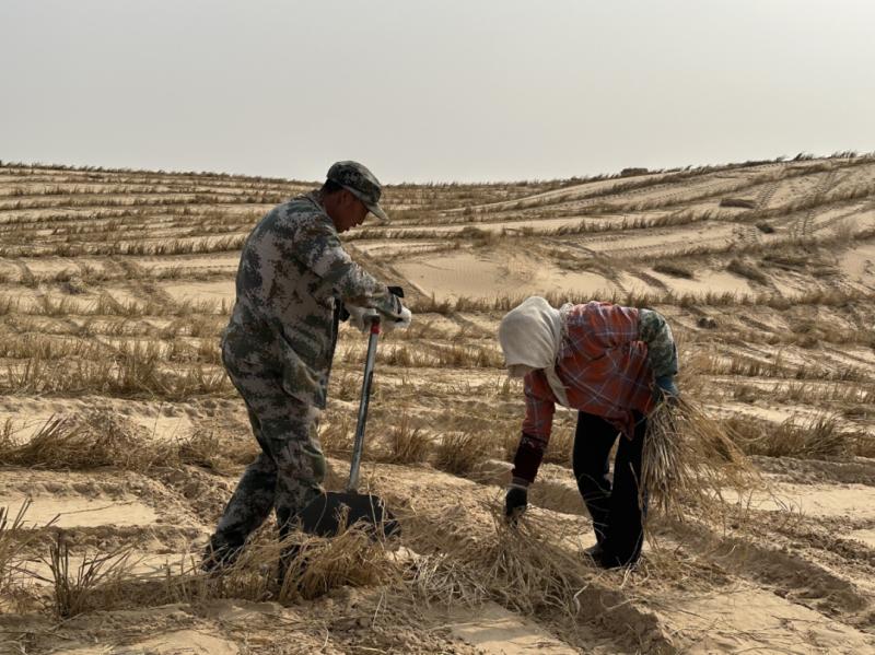 “三北”六期工程在葦蓮蘇鄉(xiāng)的實施面積達7.5萬畝,總投資4800萬元。葦蓮蘇鄉(xiāng)鄉(xiāng)長李棟升在采訪中滿懷期待地表示:“這是葦蓮蘇鄉(xiāng)難得的發(fā)展機遇。風(fēng)沙減少了,生態(tài)環(huán)境更好了,‘以工代賑’讓鄉(xiāng)親們在家門口就能就業(yè)增收,大家參與治理的積極性非常高。鄉(xiāng)政府將全力配合,確保項目順利完成,讓沙地早日披上綠裝?!眮碜耘d安莊村的村民曹金華同樣難掩喜悅:“在這里打工,既能為治沙出份力,又能在農(nóng)閑時賺錢,一天有300元收入,很滿足?!?br/>