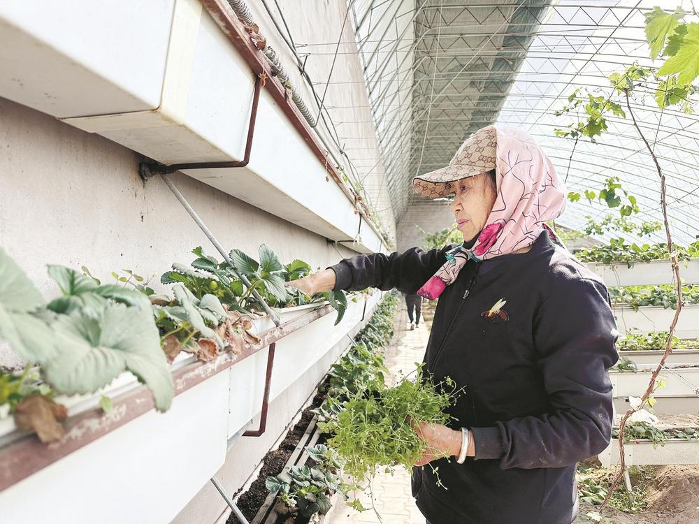 走進草莓大棚內,濃濃的暖意撲面而來。抬眼望去,離地一米多的種植架上種滿了生機勃勃、長勢喜人的草莓;穿梭在種植架間,一顆顆鮮紅欲滴、圓潤飽滿的草莓宛如璀璨的紅寶石,從綠葉間“探出頭”來,高高地懸掛在空中,散發(fā)著誘人的清香。種植戶牛尚海正在察看采用立體栽培技術的草莓長勢情況?!斑@是一種三維立體種植方式,能夠充分利用空間和光照,大幅度提高生產效率。以前一畝地最多種8000株,現(xiàn)在能種2.4萬株,產量提高了3倍,而且草莓個頭更均勻,賣相更好?!迸I泻8嬖V記者,這種種植方式不僅省工、省力,還降低了勞動強度,摘草莓也不用彎腰了。此外,這種種植模式比傳統(tǒng)種植模式每畝節(jié)水50%。