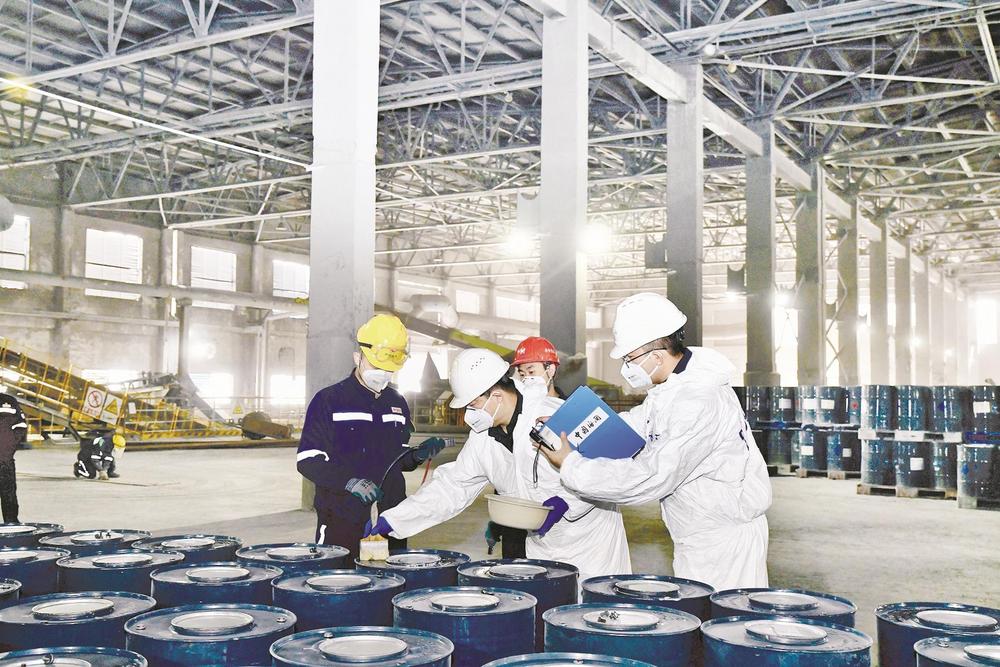 近日,烏海海關(guān)關(guān)員對(duì)內(nèi)蒙古宜化化工有限公司出口的化工產(chǎn)品進(jìn)行檢查,不久后,這些產(chǎn)品將通過陸海聯(lián)運(yùn)銷往東南亞市場(chǎng)。(王超 攝)