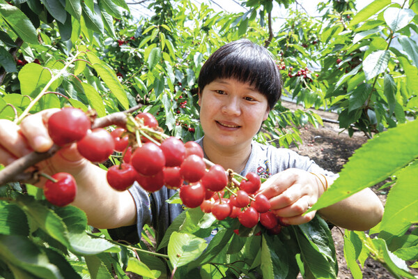 天氣漸暖,烏蘭浩特市義勒力特鎮(zhèn)義勒力特嘎查設(shè)施農(nóng)業(yè)園區(qū)的櫻桃迎來豐收季。走進(jìn)種植戶張小磊經(jīng)營的17座櫻桃大棚,“美早”“佳紅”等優(yōu)質(zhì)品種掛滿枝頭。據(jù)了解,目前大棚日均接待游客超200人次,預(yù)計(jì)可為張小磊帶來50余萬元收入。