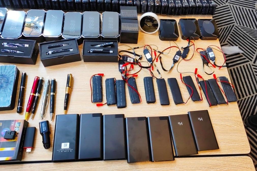 這是民警繳獲的偽裝成各類生活用品的竊聽(tīng)竊照器材。(饒河縣公安局供圖)