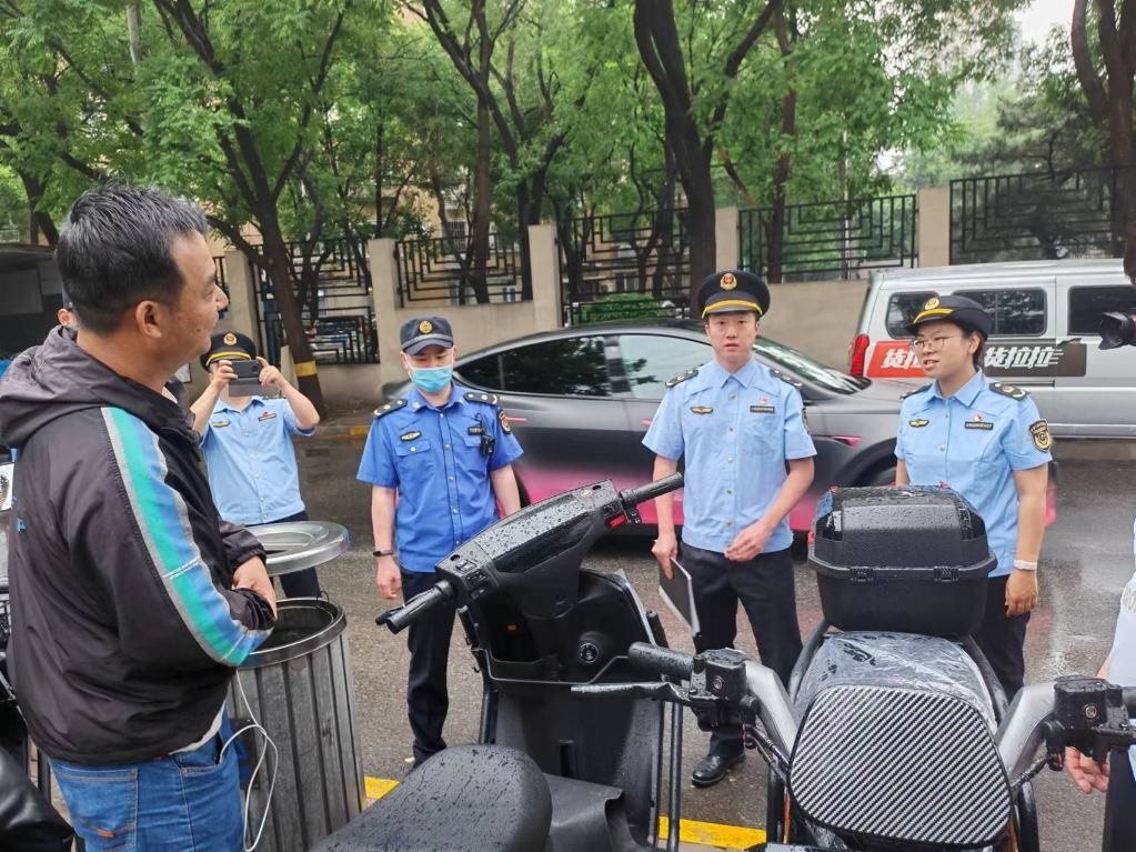 5月10日,北京市場監(jiān)管部門突擊檢查,現(xiàn)場發(fā)現(xiàn)多輛待售違規(guī)電動自行車。(北京市市場監(jiān)管局供圖)