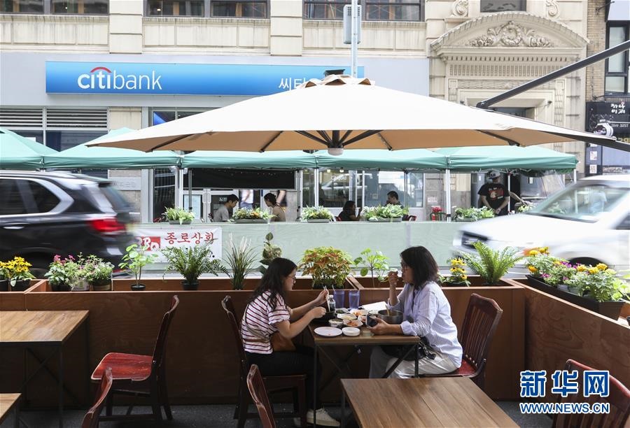 7月23日,在美國紐約,人們在戶外就餐區(qū)用餐。美國約翰斯·霍普金斯大學(xué)23日發(fā)布的新冠疫情最新統(tǒng)計(jì)數(shù)據(jù)顯示,美國累計(jì)確診病例超過400萬例。數(shù)據(jù)顯示,截至美國東部時(shí)間23日15時(shí)34分(北京時(shí)間24日3時(shí)34分),美國累計(jì)確診病例4007859例,累計(jì)死亡病例143846例。新華社記者王迎攝