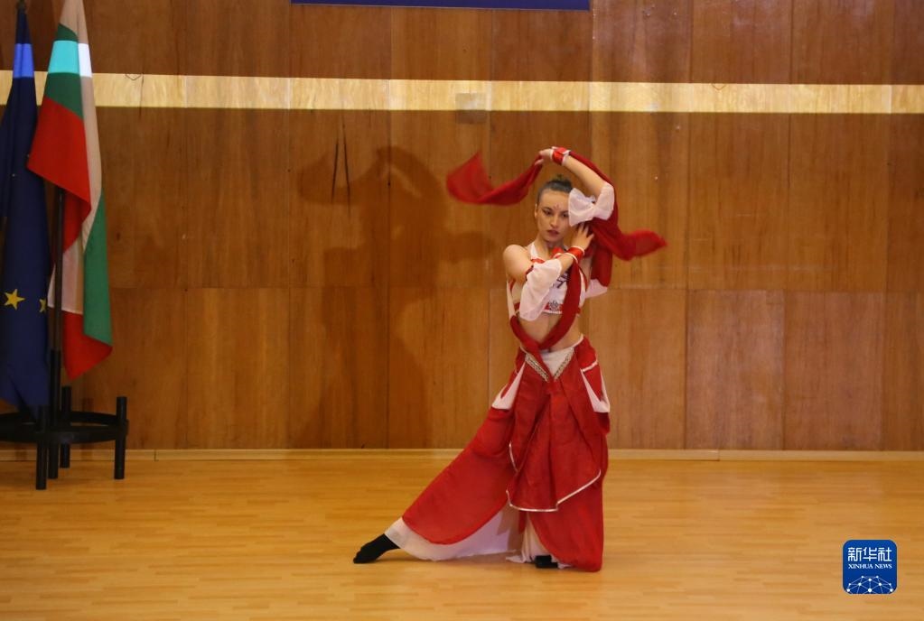 5月15日,參賽選手在保加利亞大特爾諾沃舉辦的“漢語(yǔ)橋”世界大學(xué)生中文比賽保加利亞賽區(qū)決賽上展示才藝。新華社記者林浩攝