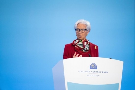 3月16日,歐洲中央銀行行長拉加德在德國法蘭克福歐洲央行總部出席新聞發(fā)布會(huì)。新華社發(fā)