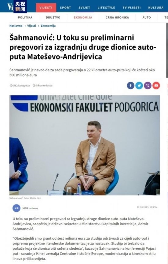 黑山資本投資部國務(wù)秘書沙赫馬諾維奇在發(fā)言中表示,近年來,在共建“一帶一路”倡議和中國-中東歐國家合作機制的推動下,中國同包括黑山在內(nèi)的各國共享發(fā)展機遇,兩國在交通基礎(chǔ)設(shè)施、新能源等領(lǐng)域合作成果豐碩。