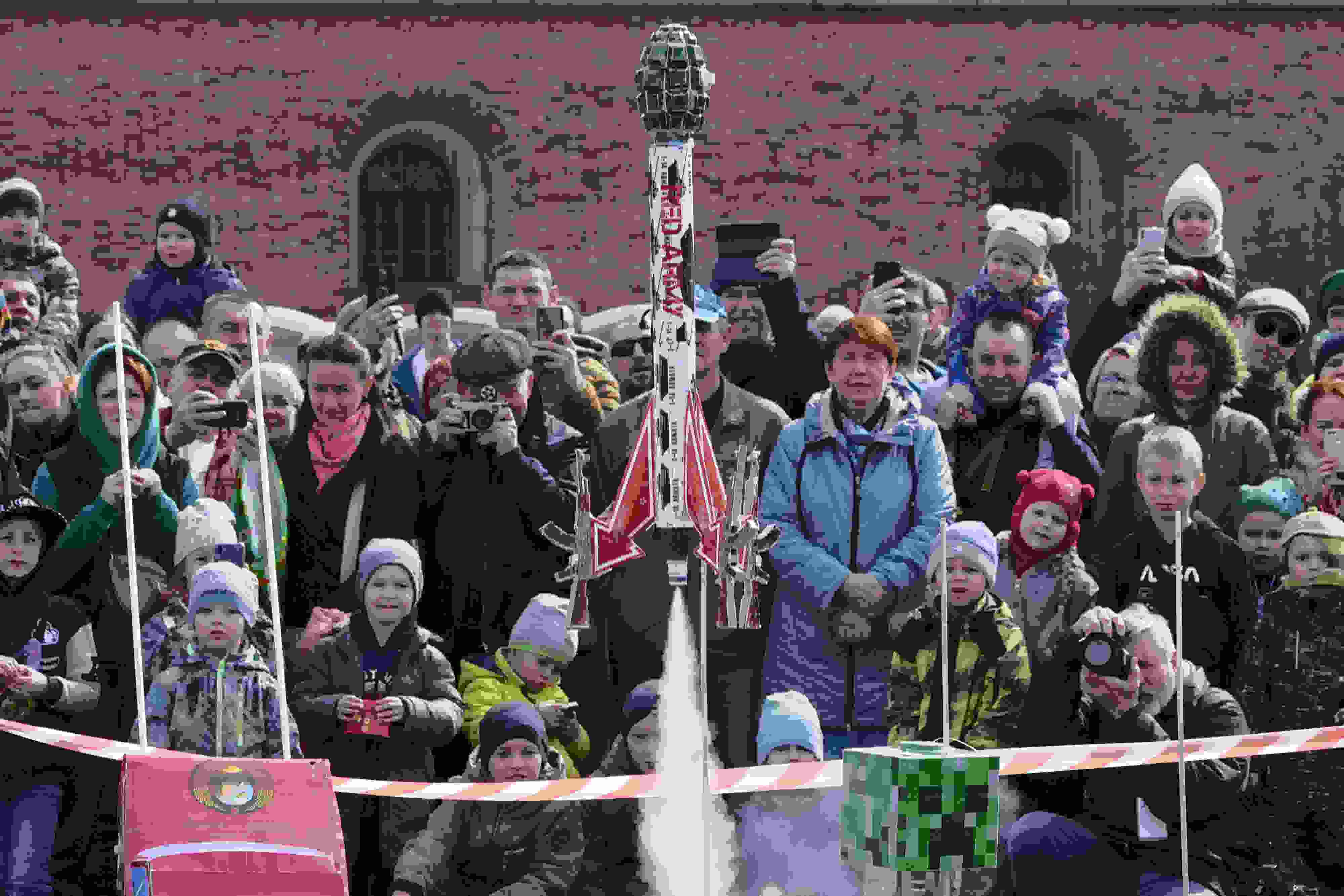 當(dāng)?shù)貢r(shí)間2023年4月16日,俄羅斯圣彼得堡,民眾發(fā)射火箭模型紀(jì)念人類首次太空飛行62周年。 視覺(jué)中國(guó)