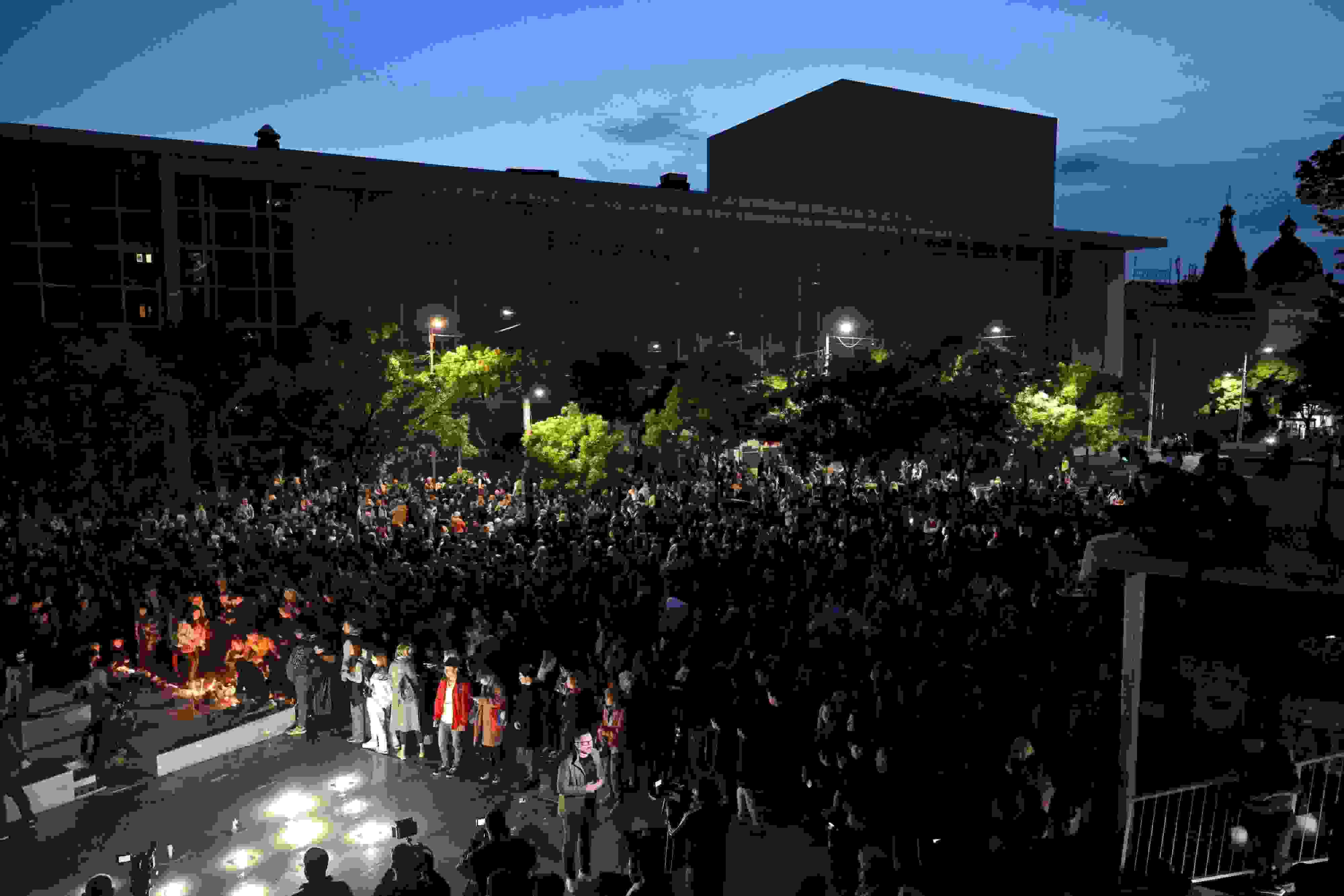 當(dāng)?shù)貢r(shí)間2023年5月3日,塞爾維亞貝爾格萊德,人們?cè)趯W(xué)校門(mén)前悼念遇難者。