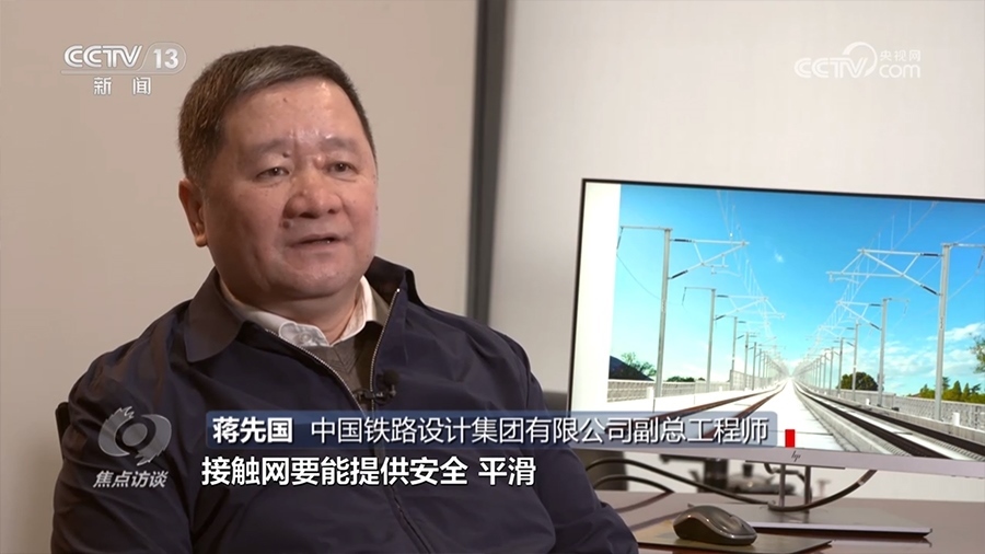 中國鐵路設計集團有限公司副總工程師蔣先國:“把高鐵比喻成人,接觸網(wǎng)就是血管,能提供安全、平滑、可靠、穩(wěn)定的移動通道?!?/p>