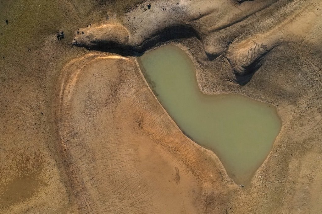 當地時間2022年2月15日,西班牙馬拉加70公里的石泉湖近乎干涸。官員聲稱西班牙水儲備目前不足其容量的45%,