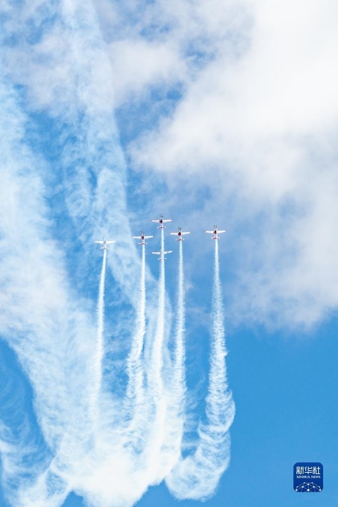5月23日,在馬來西亞蘭卡威舉行的第16屆蘭卡威國際海事和航空展上,飛行表演隊進(jìn)行特技飛行表演。