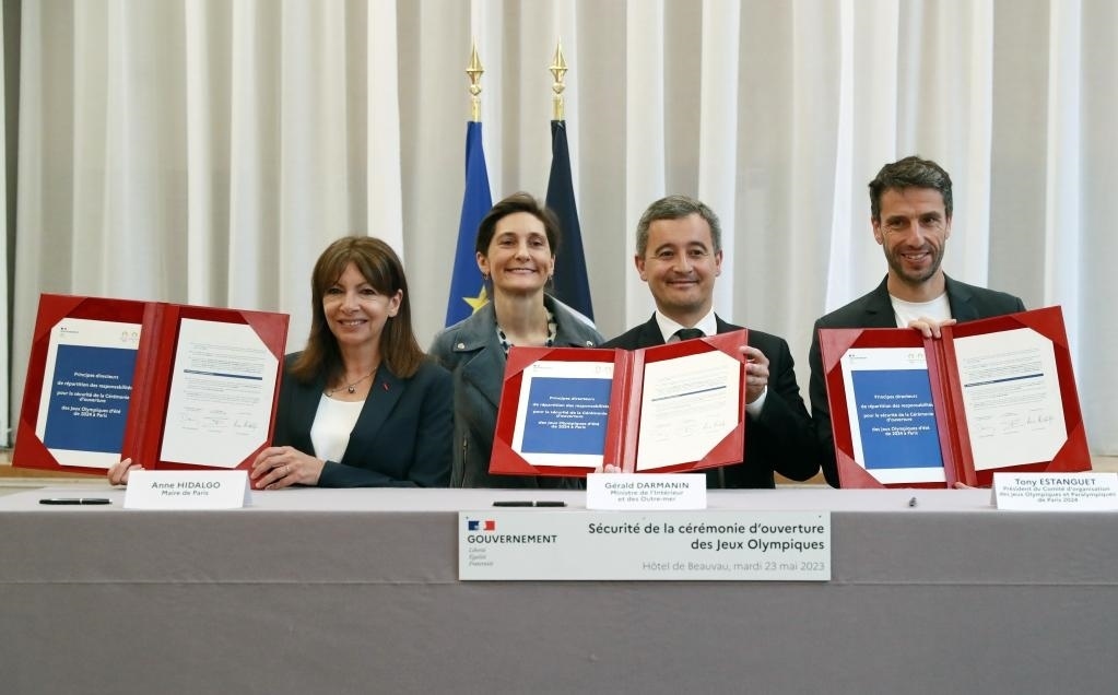 5月23日,為確保巴黎奧運(yùn)會“河上”開幕式安全順利舉行,法國內(nèi)政部、巴黎奧組委、巴黎市政府三方在巴黎簽訂協(xié)議,明確各自的安保職責(zé)。新華社記者 高靜 攝