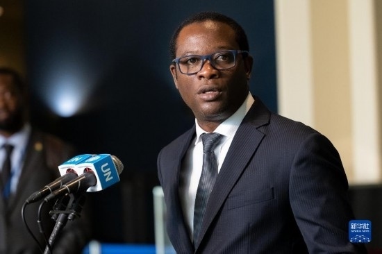 6月6日,在位于紐約的聯(lián)合國總部,塞拉利昂外交與國際合作部長弗朗西斯在塞拉利昂當(dāng)選聯(lián)合國安理會(huì)非常任理事國后在記者見面會(huì)上講話。新華社發(fā)(聯(lián)合國供圖/洛伊·費(fèi)利佩攝)