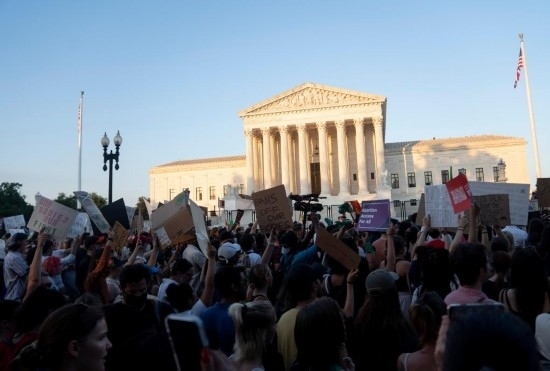 2022年6月24日,墮胎權(quán)支持者在美國(guó)首都華盛頓的聯(lián)邦最高法院外抗議。當(dāng)天,美國(guó)聯(lián)邦最高法院推翻近半個(gè)世紀(jì)前在聯(lián)邦層面確立墮胎權(quán)的判例“羅訴韋德案”。新華社記者劉杰攝