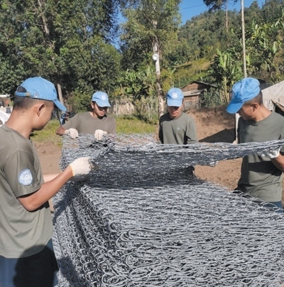 自去年9月部署到任務(wù)區(qū)以來,第二十六批維和工兵分隊已完成32項工程任務(wù)、26項工程勘察,累計修筑道路52公里、搭建板房50間、構(gòu)筑圍墻2100米。今年5月,南基伍省卡萊亥地區(qū)遭受強降雨和洪水災(zāi)害,造成400多人死亡,上千座民居被沖毀。關(guān)鍵運輸線路上的魯濟拉橋被洪水沖垮,切斷了人道主義援助物資的運輸線,給當?shù)孛癖娊煌ǔ鲂泻涂购榫葹?zāi)造成嚴重影響。工兵分隊接到任務(wù)后,第一時間奔赴災(zāi)區(qū)一線,在河邊安營扎寨,執(zhí)行工程救援。7月,嶄新的魯濟拉橋已經(jīng)順利完工。