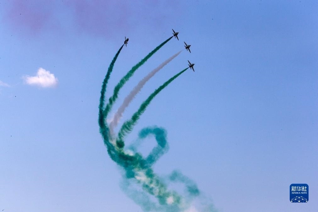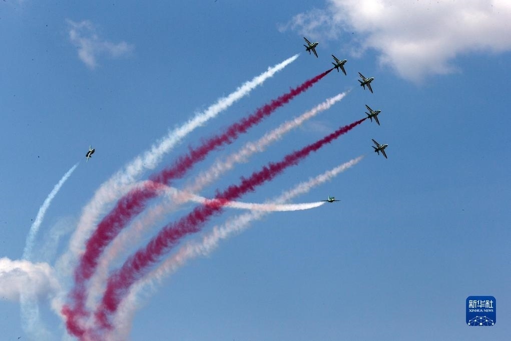 9月2日,在希臘塔納格拉空軍基地的雅典飛行周上,來自沙特阿拉伯的飛行表演隊進(jìn)行表演。新華社發(fā)(馬里奧斯·羅洛斯攝)