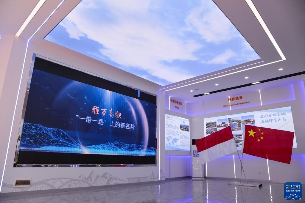 這是7月20日在印度尼西亞萬隆德卡魯爾車站旁拍攝的中國中鐵印尼雅萬項目經理部展廳內景。新華社記者 徐欽 攝