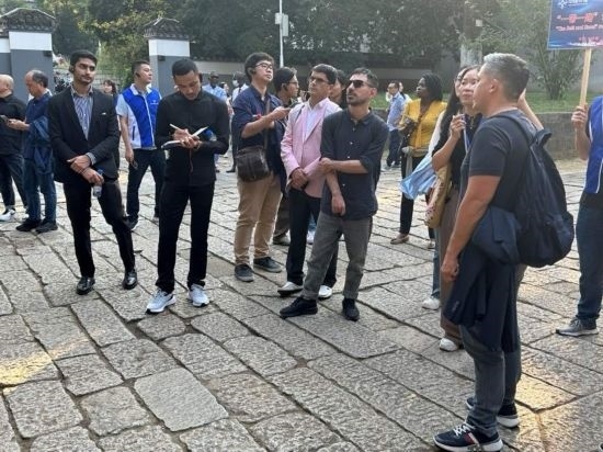 10月24日,2023“一帶一路”媒體合作論壇聯(lián)合采訪團(tuán)參訪岳麓書院。(本報(bào)記者 劉書文攝)