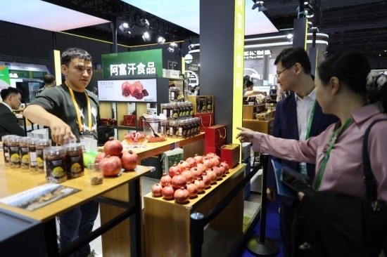 11月6日,在第六屆進博會食品及農產品展區(qū),阿富汗食品吸引參展人員。