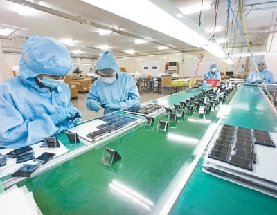 龍江工業(yè)園內(nèi),方正電機(越南)有限責任公司車間里的當?shù)貑T工正在工作。黎國忠攝