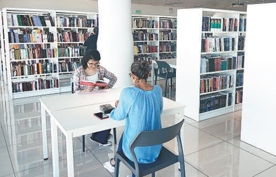 當(dāng)?shù)孛癖娫谥袊_爾瓦多國家圖書館內(nèi)閱讀。葉 鵬攝