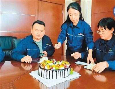 中哈(連云港)物流合作基地人員為馬合江(左一)過生日。蘇立洋攝