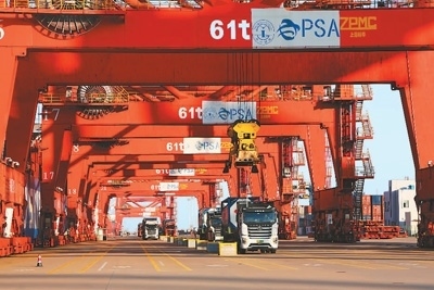 國際貨輪在連云港港口停靠。林 軍攝