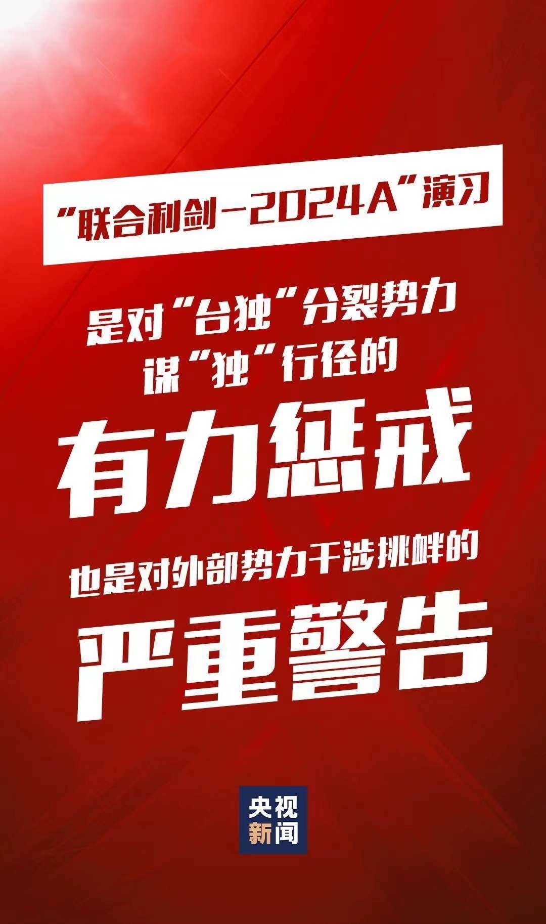 5月23日至24日,中國人民解放軍東部戰(zhàn)區(qū)組織戰(zhàn)區(qū)陸軍、海軍、空軍、火箭軍等兵力,位臺島周邊開展“聯(lián)合利劍-2024A”演習(xí),重點演練聯(lián)合海空戰(zhàn)備警巡、聯(lián)合奪取戰(zhàn)場綜合控制權(quán)、聯(lián)合精打要害目標(biāo)等科目,艦機抵近臺島周邊戰(zhàn)巡,島鏈內(nèi)外一體聯(lián)動,檢驗戰(zhàn)區(qū)部隊聯(lián)合作戰(zhàn)實戰(zhàn)能力。這是中國維護(hù)國家主權(quán)和領(lǐng)土完整的正義之舉,也是對“臺獨”分裂勢力謀“獨”行徑的有力懲戒,對外部勢力干涉挑釁的嚴(yán)重警告。