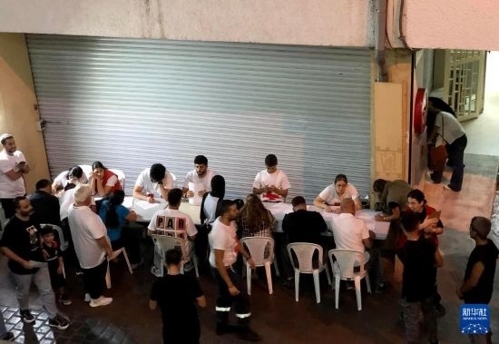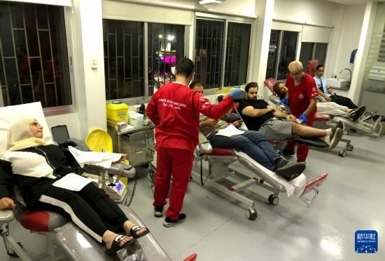 9月17日,在黎巴嫩貝魯特,人們登記為傳呼設(shè)備爆炸事件傷者獻(xiàn)血。新華社發(fā)(比拉爾·賈維希攝)