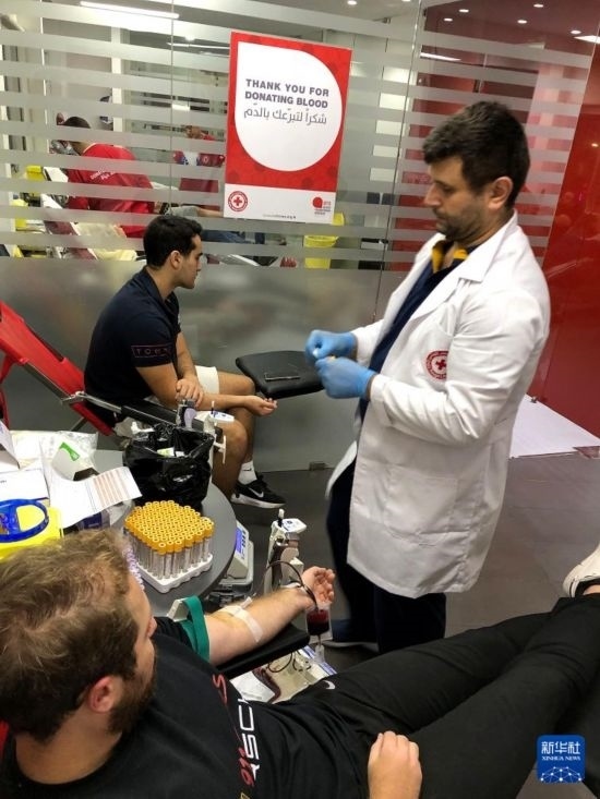 9月17日,在黎巴嫩貝魯特,人們?yōu)閭骱粼O(shè)備爆炸事件傷者獻(xiàn)血。新華社發(fā)(比拉爾·賈維希攝)