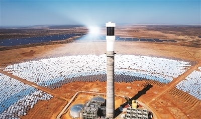 在南非北開普省拍攝的南非紅石100兆瓦塔式熔鹽光熱電站項目。新華社記者 張譽(yù)東攝