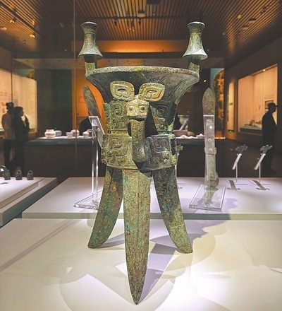 殷墟位于河南安陽市西北郊,是中國第一個有文獻記載并經(jīng)甲骨文及考古發(fā)掘所證實的商代晚期都城遺址,也是世界青銅文明的重要代表。殷墟博物館與殷墟宗廟宮殿區(qū)隔河相望,是全景式展現(xiàn)商文明的國家重大考古專題博物館。圖為殷墟博物館里展出的殷墟婦好墓出土的銅斝。人民網(wǎng)俄文專家 葉列娜·達維多娃攝 殷墟博物館是一座歷史文化的寶庫。在這里,我近距離地觀察一件件青銅器,仿佛看到其上閃爍著的中國古人智慧的火花;我端詳一片片的甲骨,試圖解讀那些古老的文字,仿佛在與中國古人跨越時空對話。在這里,我看到了考古學(xué)家如何不遺余力地保護歷史,也觀察到年輕的甲骨文愛好者們不斷用新鮮創(chuàng)意為文物保護注入新的生命力,這份傳承讓我深受觸動。