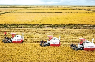 項目采用“公司+小農(nóng)戶”的經(jīng)營模式——中國企業(yè)負(fù)責(zé)土地開墾、溝渠清理、圍堰修建等農(nóng)田開發(fā)工作,再為當(dāng)?shù)胤N植戶提供資金、生產(chǎn)資料、農(nóng)機(jī)和技術(shù)等方面的服務(wù),最后依照合同收購稻谷。