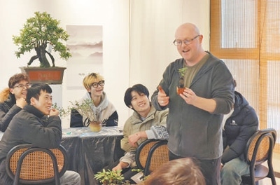 茅檐石壁的傳統(tǒng)民居,造型多變的川派盆景,位于四川崇州市觀勝鎮(zhèn)的嚴(yán)家彎灣,人和、景美、風(fēng)光好。沿著蜿蜒曲折的小徑,走過幾處民居,便來到加拿大盆景師查德·辛克萊(中文名“白熊”)的小院。受外婆影響,白熊自小便對(duì)中國傳統(tǒng)文化充滿好奇。因熱愛中式盆景,他來到中國潛心學(xué)習(xí)研究,一晃已過去20多年。