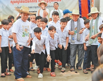 中柬友好扶貧示范村村民慶祝柬埔寨傳統(tǒng)新年。