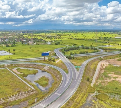 在柬埔寨磅士卑省拍攝的金港高速公路。
