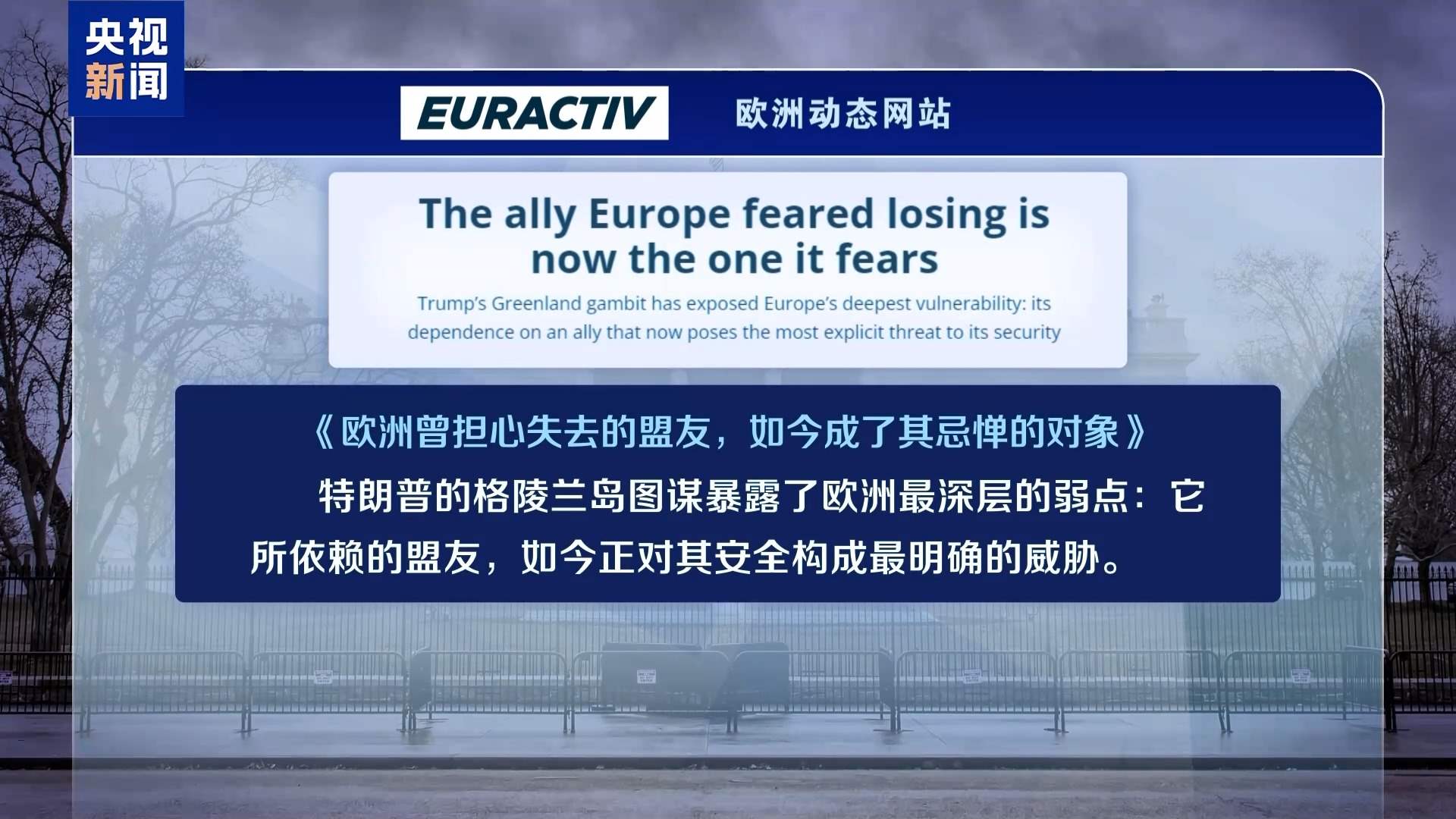 歐洲動態(tài)網(wǎng)站6日以《歐洲曾擔(dān)心失去的盟友,如今成了其忌憚的對象》為題評論說,“特朗普的格陵蘭島圖謀暴露了歐洲最深層的弱點:它所依賴的盟友,如今正對其安全構(gòu)成最明確的威脅。”文章還提醒說,我們正進(jìn)入一個“強權(quán)即公理”的新世界——而歐洲人對此毫無準(zhǔn)備?;蛟S,格陵蘭島可能帶來的羞辱,將促使歐洲人反思這一現(xiàn)狀,并最終采取行動改變局面。